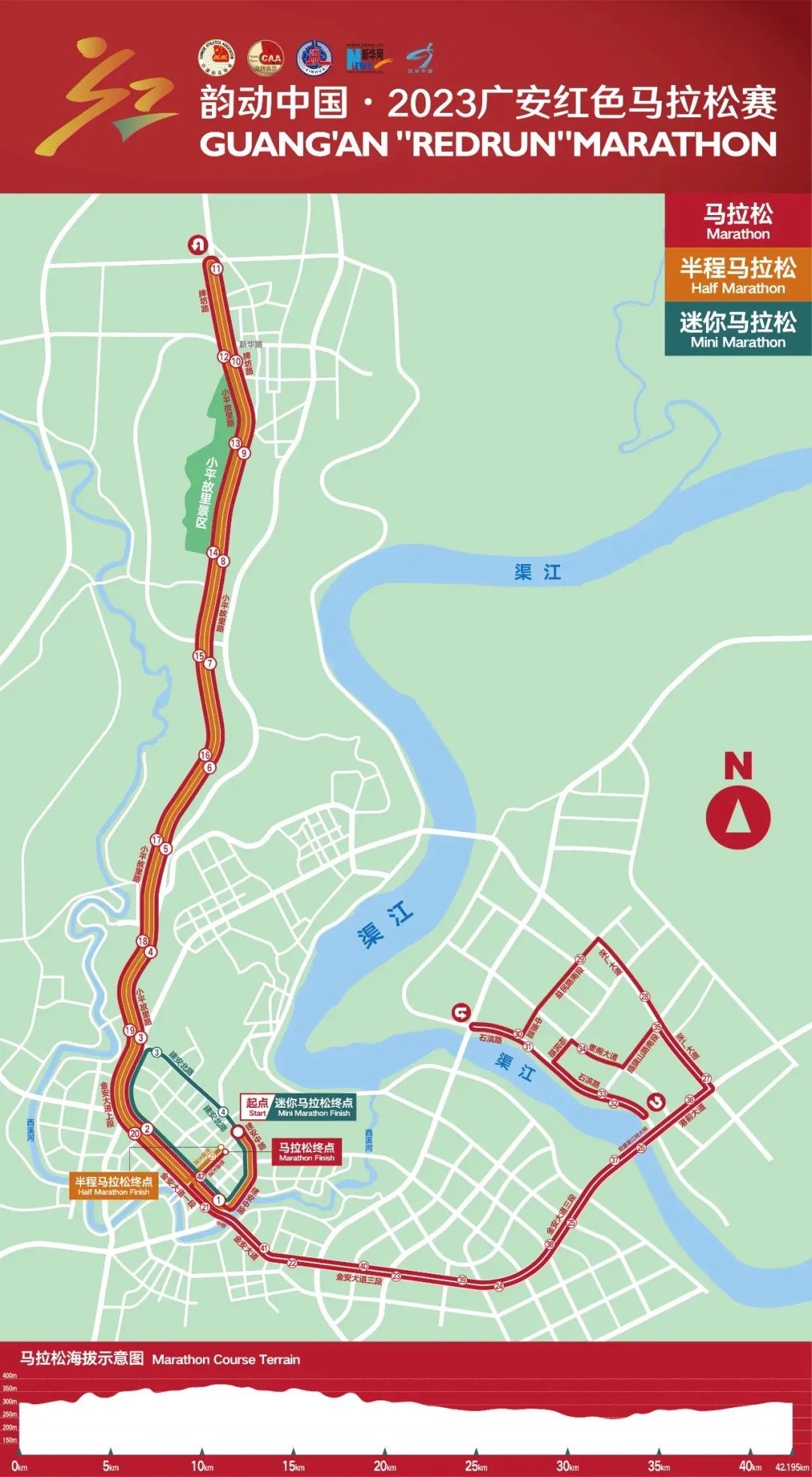 除了这些,沿途还会路过人气旺盛的五一公园,这里有“广安之眼”摩天轮;经过风景秀美的渠江红滩音乐公园,这里有“小平 您好”的大型岩刻;赛道附近还有城市体育公园、月湖邻里公园、天星湖公园……