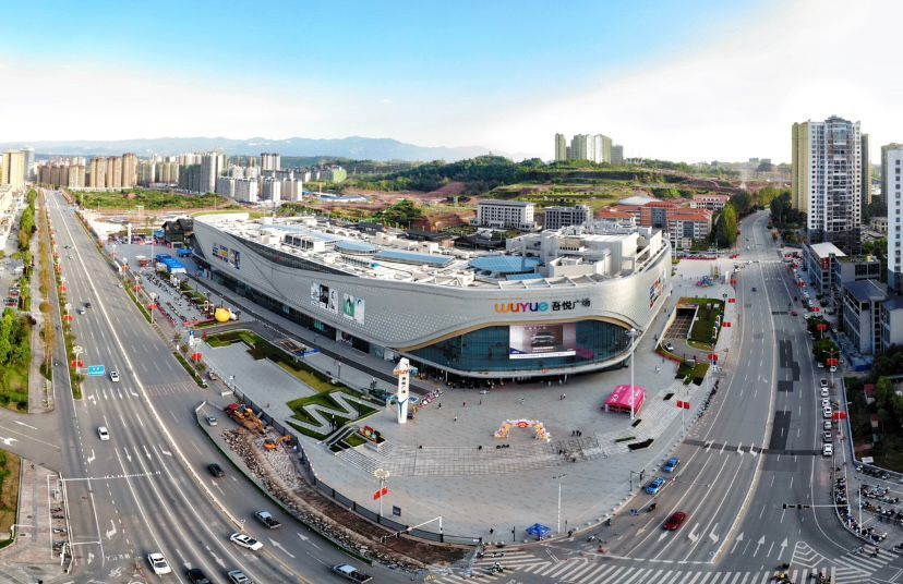 23公里,广安吾悦广场,吃购娱一体的商业综合体,在夜晚外围灯光衬托下,像一艘商业巨舰。