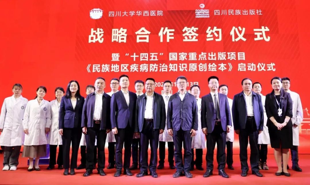 10月13日上午,第五届天府书展期间,四川大学华西医院、四川民族出版社战略合作签约仪式暨“十四五”国家重点出版项目《民族地区疾病防治知识原创绘本》启动仪式在成都世纪城新会展中心举行。