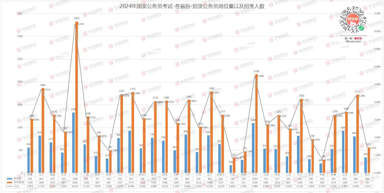 职位表也已经发布。华图教育首席研究员刘有珍分析说,2024年国考共计设置了18948个岗位,计划招录39600人,相比2023年计划招录人数增加6.7%,国考再度迎来了一小波扩招。
