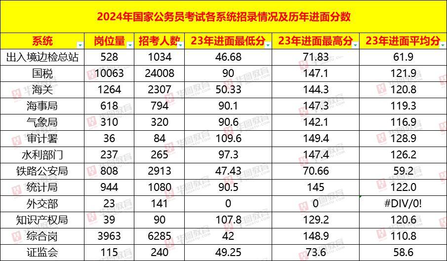 招考职位主要集中在税务、海关、铁路公安、出入境边防总站等系统。其中国税仍然是“招考大户”,招录职位为10063个,招考人数为24008人,占比60.69%。