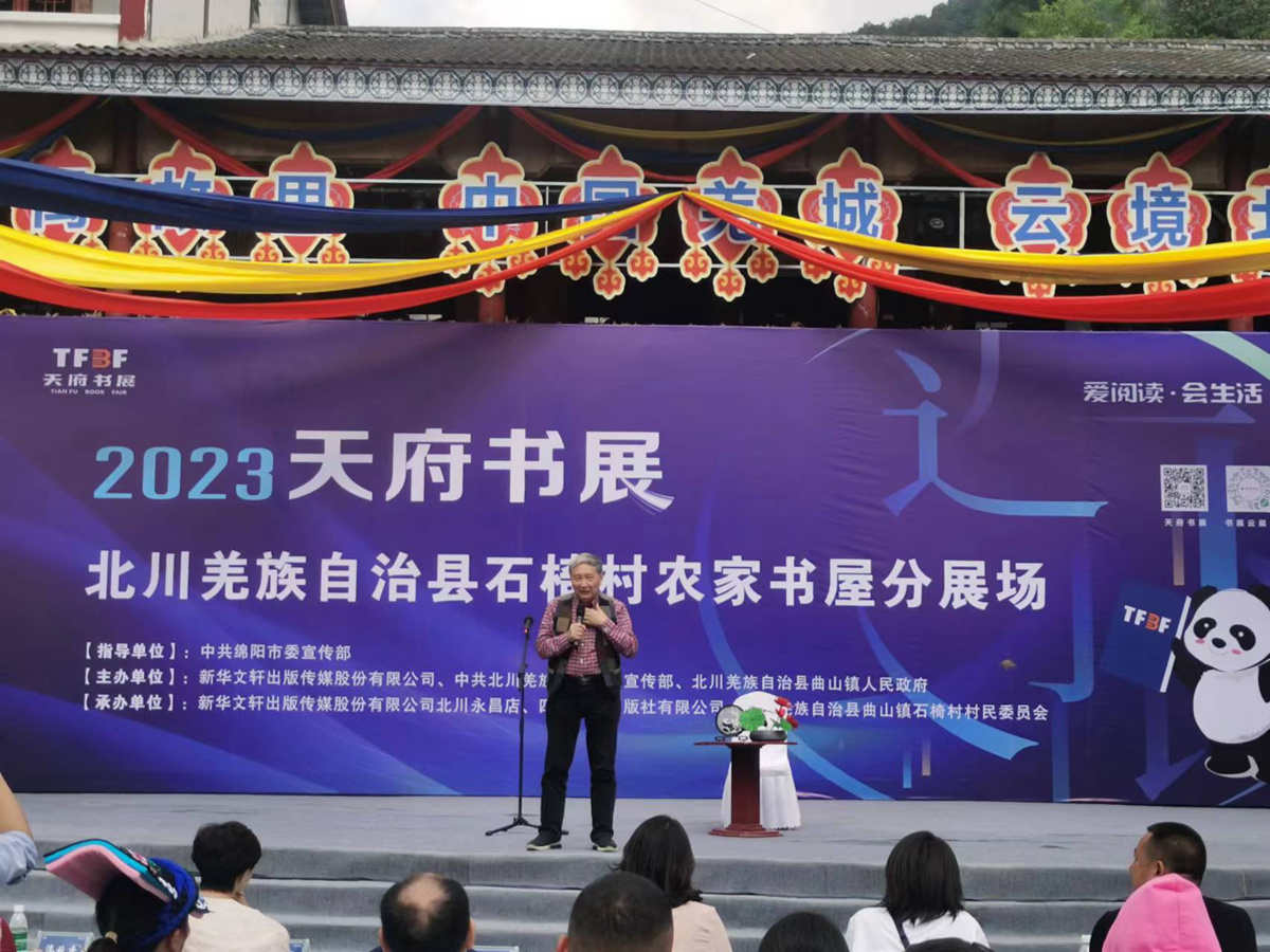 10月14日,“云朵上的石椅村”主题阅读分享会,在2023天府书展绵阳分展场北川石椅羌寨举办。两届中宣部“五个一工程”奖获得者、著名作家谭楷与读者们分享了他的最新著作《云朵上的石椅村》。