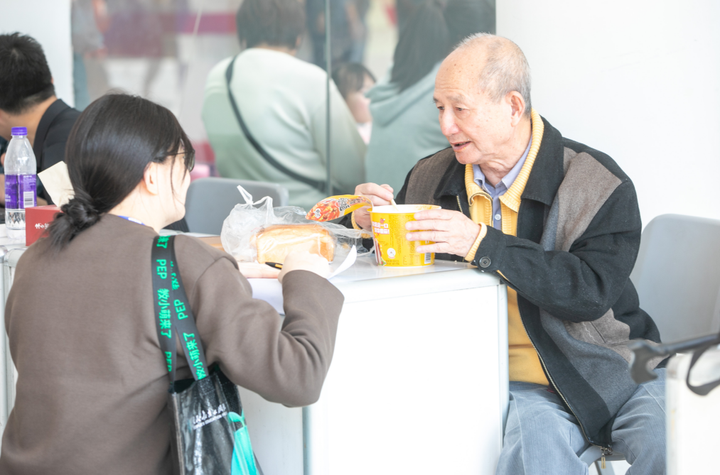 87岁老人税蔚洪也来了!每一届天府书展,他都不曾落下。为了来到这里,税老早上6点过起床,先是坐地铁4号线,再转7号线,最终踏上18号线,抵达这场阅读盛宴。随身背的书包里,有两枚煮熟的鸡蛋、一个被压得有些皱的面包和一盒方便面,“这是我的早餐和午餐。”税老告诉记者,他1957年毕业于西南师范大学,“那个时候还叫学院,我虽然学的是美术,但我太喜欢文学、时事了。”当天,税老买了5本书,一本是樊锦诗的《我心归处是敦煌》,其他的都是国际局势和世界政治经济相关的书籍,“每天我两小时上网,了解时事。两小时阅读,提升文化。”税老说,他每年会花上千元购书,家里已经有数千册图书。说这话时,税老无意中抬了抬手,袖口露出几个破洞,被问起,他说:“衣服可以穿烂点,但是书必须买!”