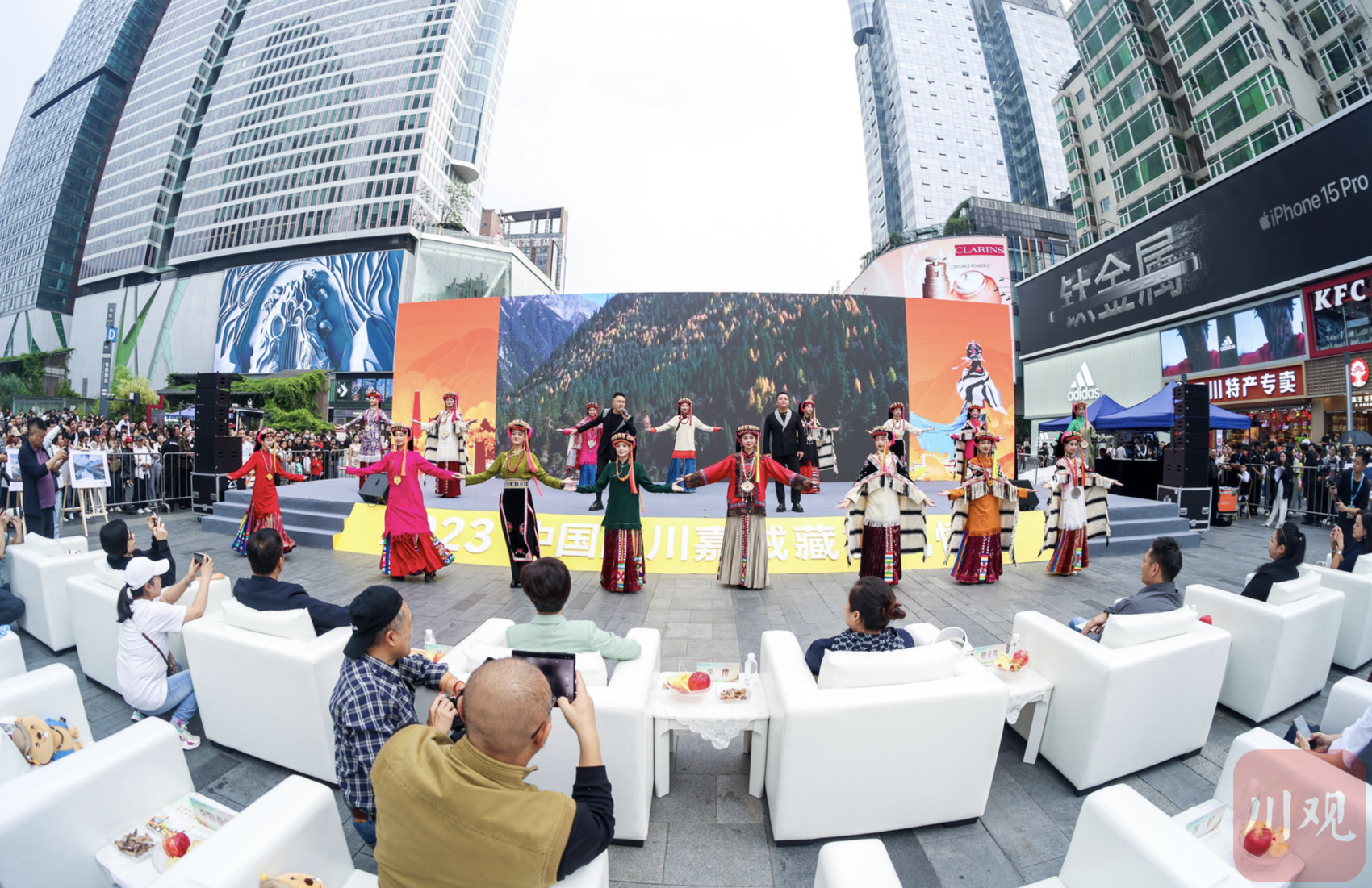 秋日里的春熙路步行街,人来人往,热闹繁华。10月15日,由中共丹巴县委、丹巴县人民政府主办的“秋韵美人谷·寻美醉丹巴”2023中国四川嘉绒藏族风情节推介会在成都市锦江区春熙路广场举行,此次推介会集中展示出了丹巴美人、美景、美物。