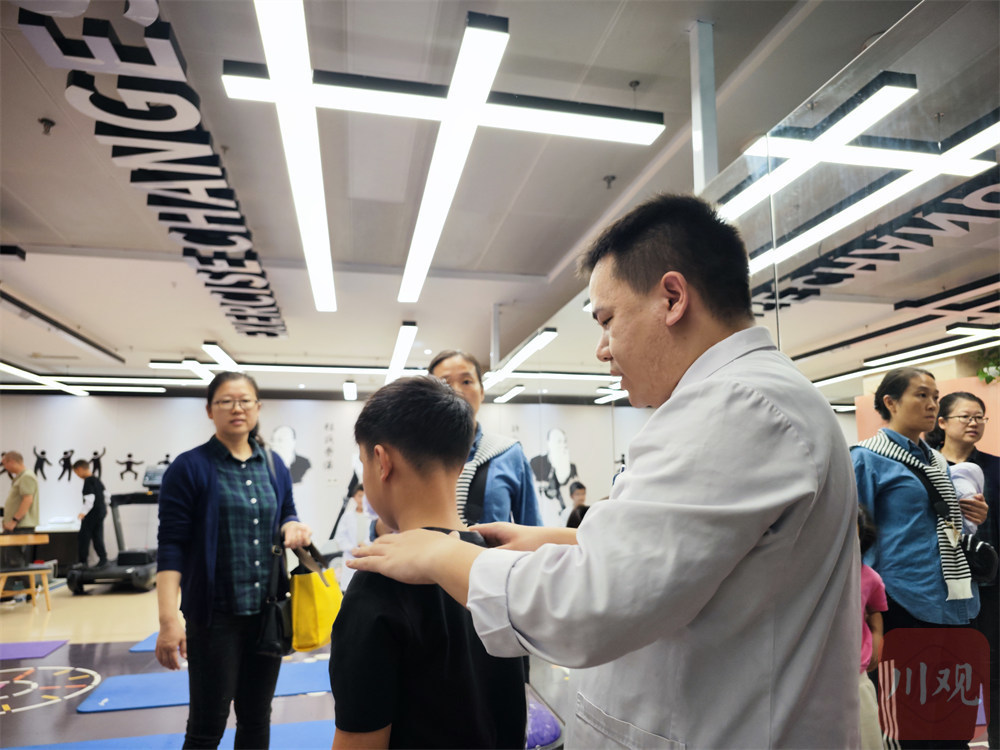 在互动环节,康复治疗师龚鑫为部分有需要的孩子进行了脊柱健康的初步筛查。