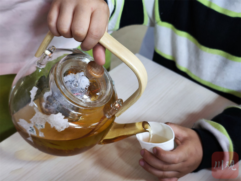 在辨识和鉴定常见中药环节,侯雪莉老师指导孩子们通过用眼睛看,用口尝,用手摸,用鼻子闻来区分苦参和甘草,鉴别僵蚕,并向孩子们赠送了中药香囊,孩子们和家长还品尝了医院自制的养生茶。