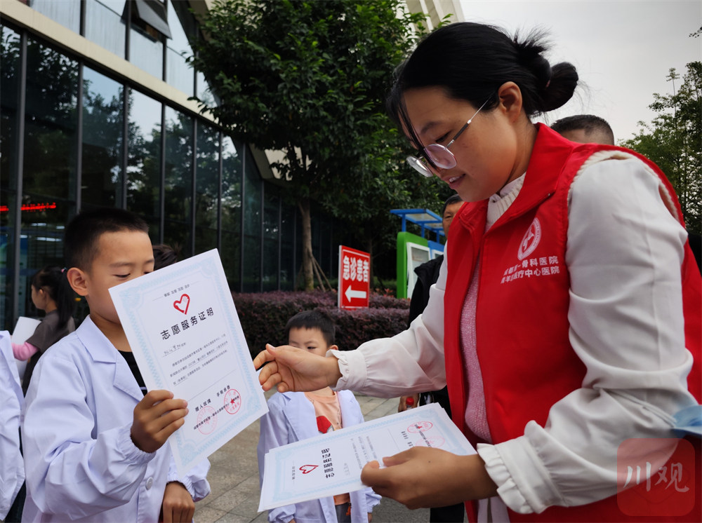活动最后,所有参与活动的“小医生”志愿者都领到了志愿服务证书,大家合影留念。“看到川观新闻发出的招募信息,我们马上就报名了,非常高兴能够带孩子参加‘小医生’职业体验活动。”一位孩子家长表示,作为川观新闻的老用户,对川观新闻组织的儿童相关活动很有兴趣,只要有时间就会报名参与。“今天的活动非常有沉浸式体验感,孩子能实地感受、实际操作,帮助孩子养成良好的生活习惯。”家长们表示,孩子通过职业体验,不仅丰富了他们对医院和医生的认识,也让他们在体验的乐趣中培养对未来职业的兴趣,非常有意义。