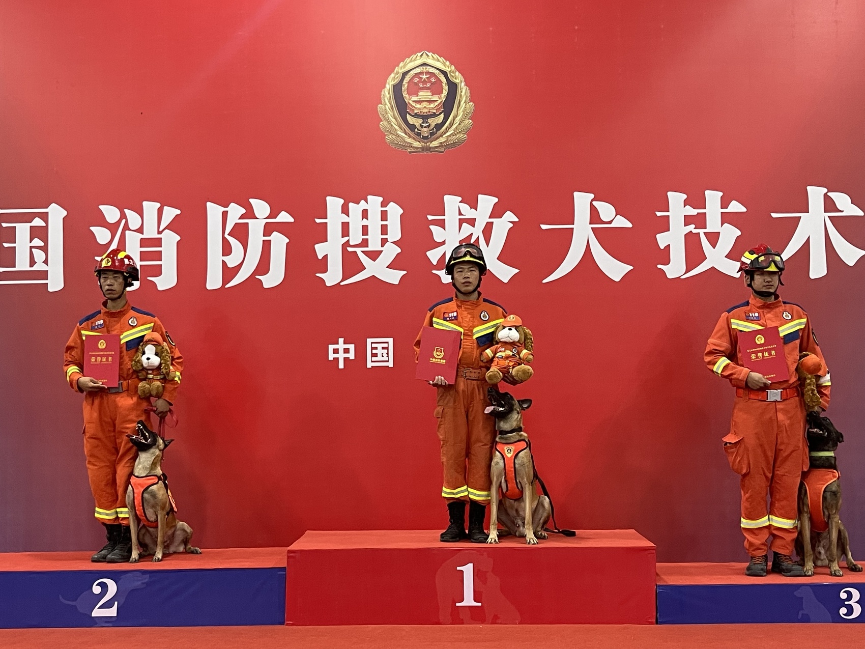 “从作业点出发到完成比赛,‘葭萌’只用了57秒57,全场第一!”回忆起当时的情形,郭兆峰仍激动不已,“‘葭萌’那天状态特别好,脱绳搜索的状态下,没有踩踏警戒线,更没有越线,找到被困者后,果断连续示警达到20秒,搜索过程中也没有掉落装备。”
