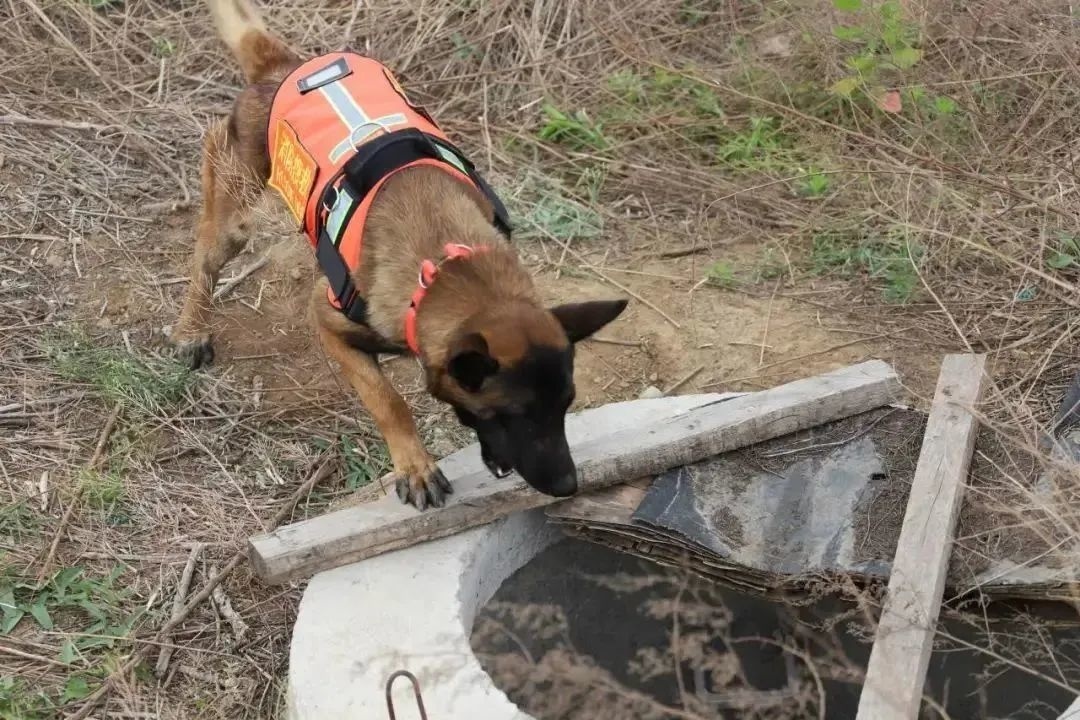 “接到指令后,‘葭萌’像一道闪电飞出去,奔跑、急转弯、进入丛林……”郭兆峰回忆,“葭萌”利用敏锐的嗅觉,在空气中寻找蛛丝马迹的线索,伴随着一阵兴奋地吠叫,它很快发现被困者。