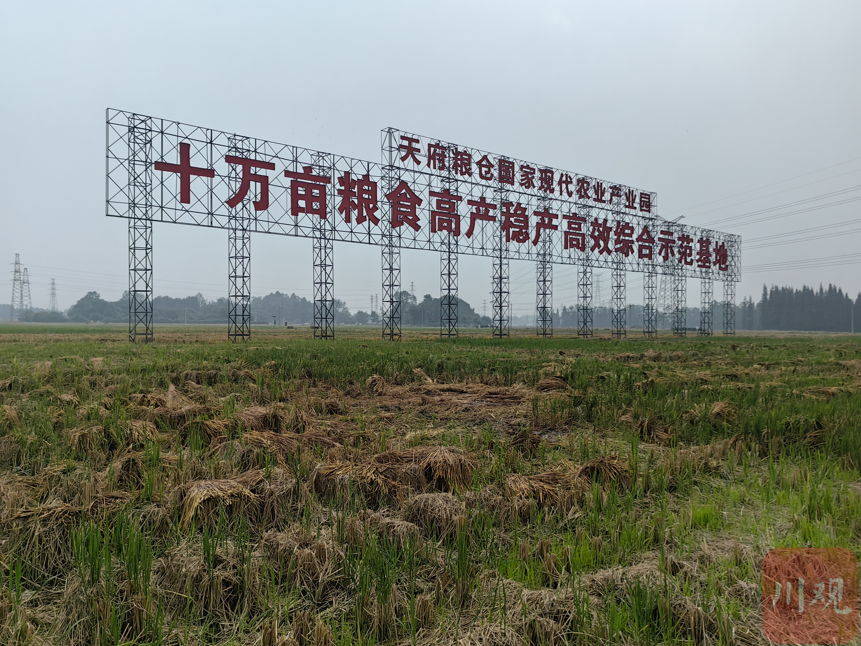 当天下午,记者来到位于崇州市的天府粮仓国家现代农业产业园,这里的十万亩粮食高产稳产高效综合示范基地,不久前才完成水稻收割,田里还留着二三十厘米高的稻桩。