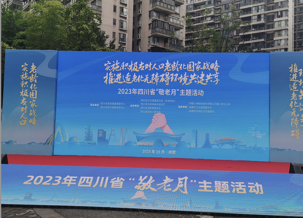 10月12日,2023年四川省“敬老月”主题活动在成都举行。活动由四川省卫生健康委、省住房和城乡建设厅、省消防救援总队和省残联主办。省卫生健康委副主任、省老龄办常务副主任赵汝鹏,省老年学会会长张雪永出席活动并讲话。