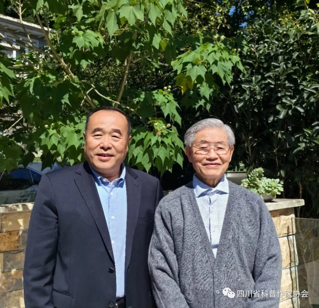 甘本祓(右)与四川省科普作家协会理事长吴显奎