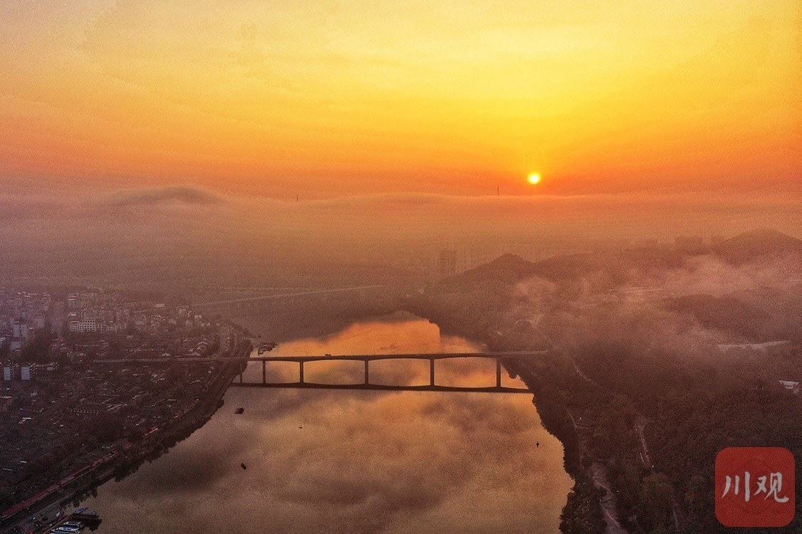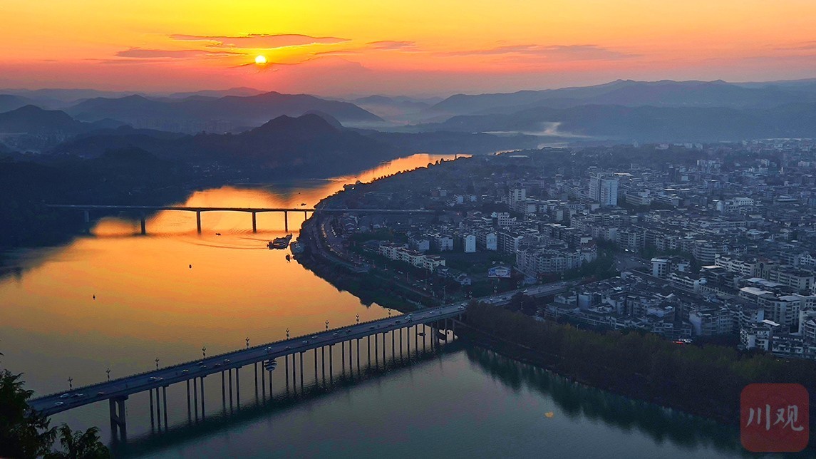 横跨嘉陵江的大桥在夜色中格外引人注目。