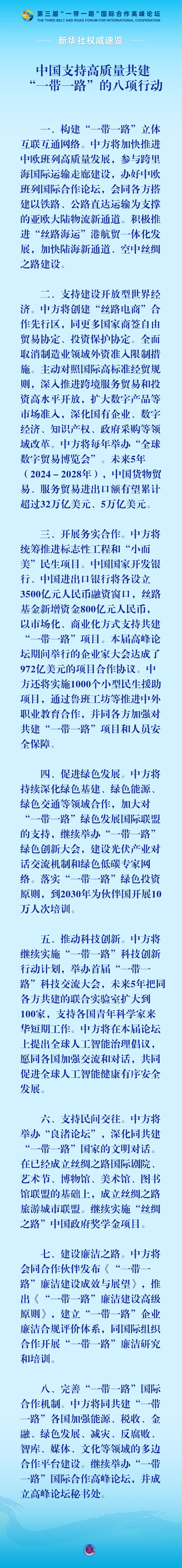 中国支持高质量共建“一带一路”的八项行动