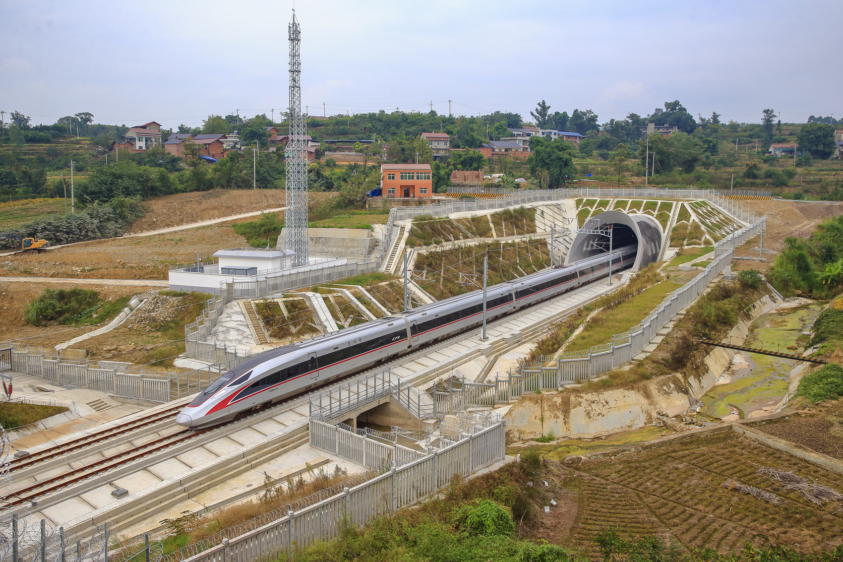 成宜高铁北起成都东站,止于渝昆高铁宜宾站,为双线高速铁路,设计时速350公里。该线路途经区域水系发达,桥隧比达71%,其中新建正线桥梁206座共约131公里,约占线路总长264公里的一半。
