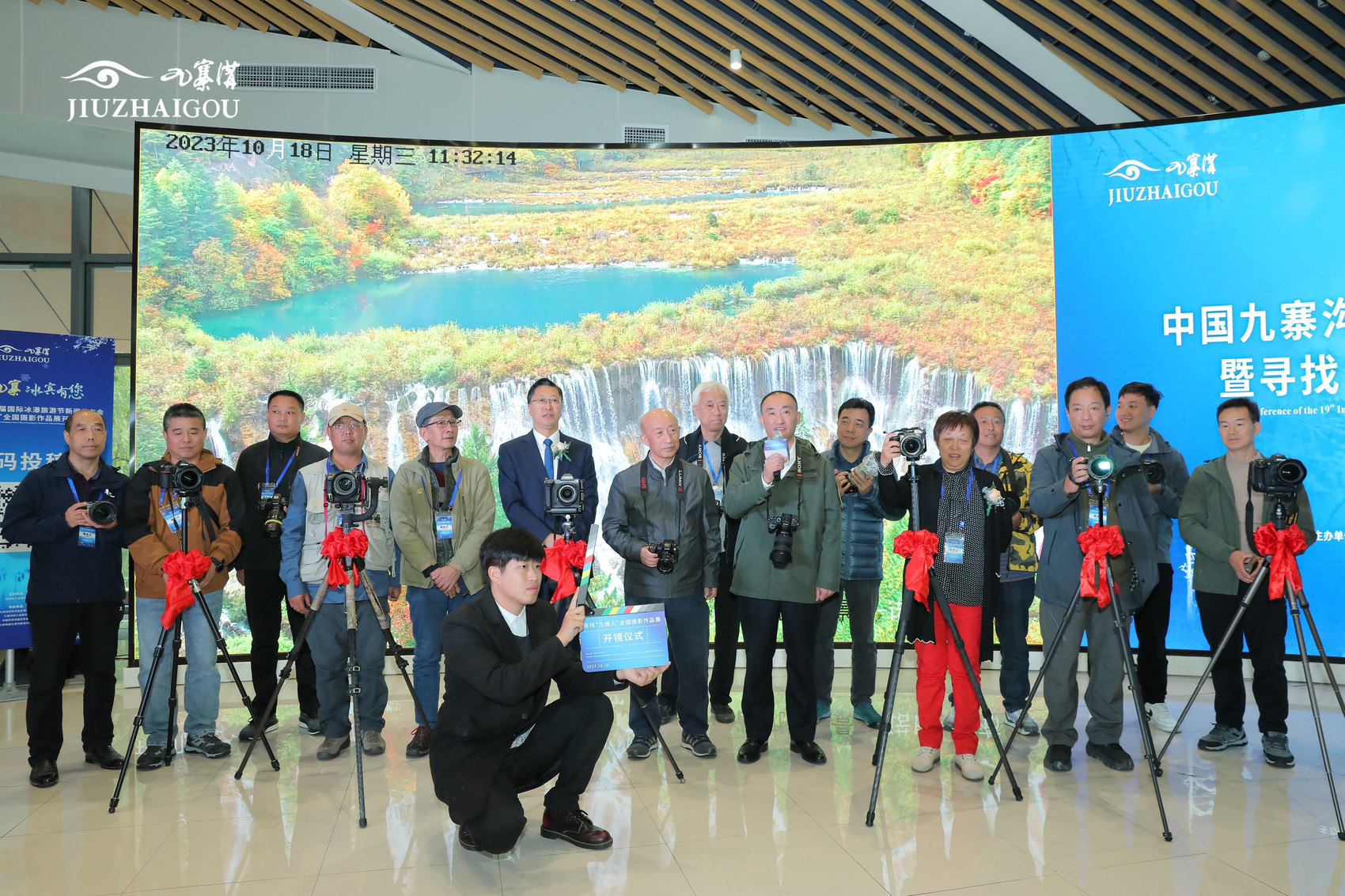 浓郁秋意中,10月18日,中国九寨沟第十九届国际冰瀑旅游节新闻发布会暨寻找“九缘人”全国摄影作品展开镜仪式活动在九寨沟景区举行。