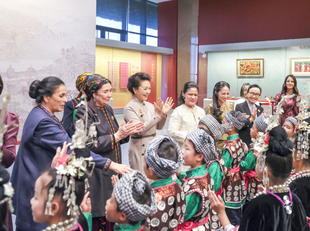 印度尼西亚总统夫人伊莉亚娜,肯尼亚总统夫人蕾切尔,老挝国家主席夫人娜丽,塞尔维亚总统夫人塔玛拉,斯里兰卡总统夫人麦特丽,土库曼斯坦民族领袖、人民委员会主席夫人别尔德穆哈梅多娃,乌兹别克斯坦总统夫人米尔济约耶娃,柬埔寨首相夫人碧占莫妮,匈牙利总理夫人雷沃伊,巴布亚新几内亚总理夫人雷切尔等参加上述活动。