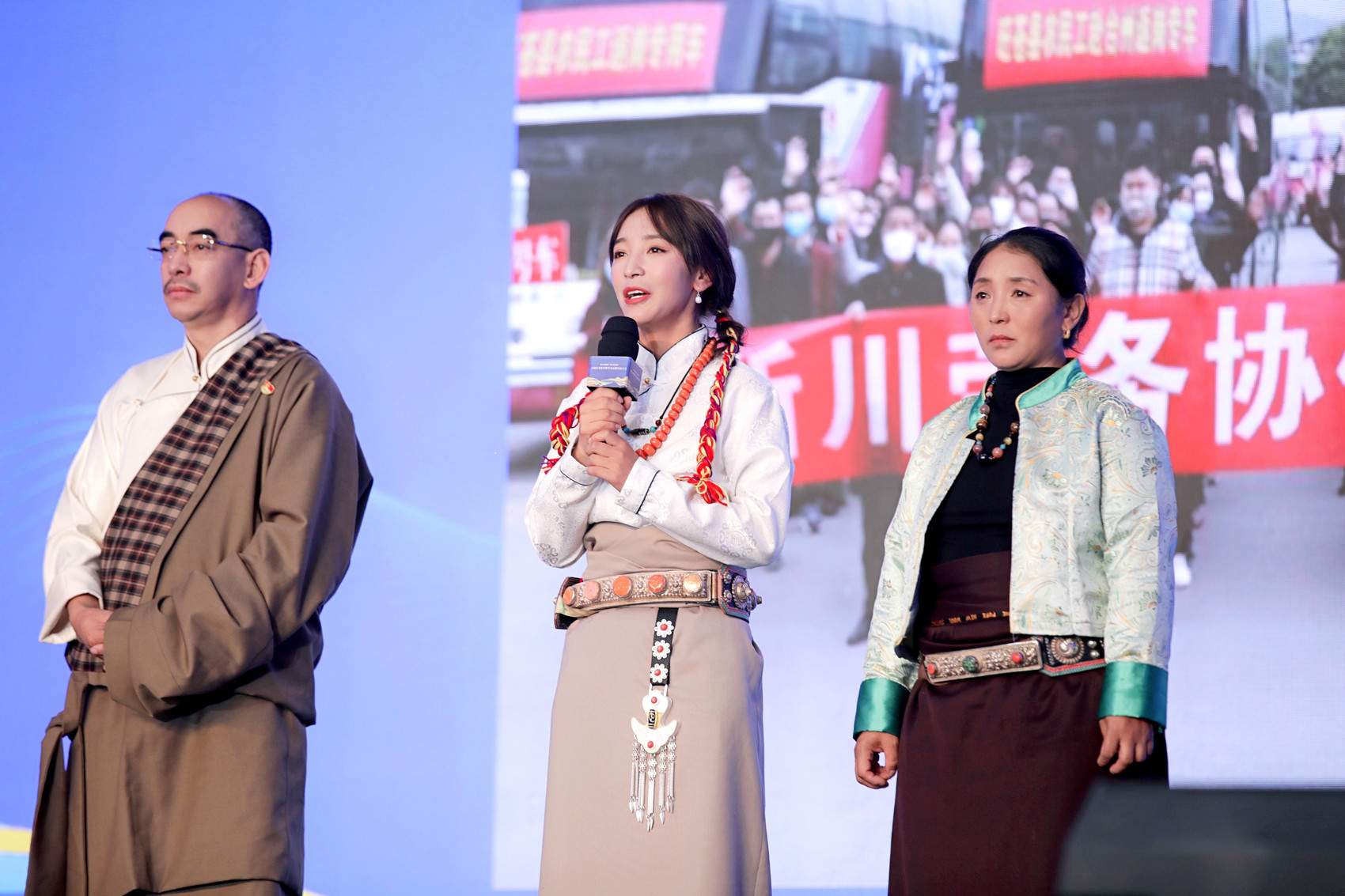 来自四川省阿坝州若尔盖县的泽让机一家人,在大会的劳务协作演绎秀环节,深情地回顾了在疫情期间,他们搭乘政府组织的包机顺利返岗务工的经过,再现了疫情期间四川首创的“出家门上车门进厂门”“点对点、一站式”劳务协作方式助力复工复产的成效。