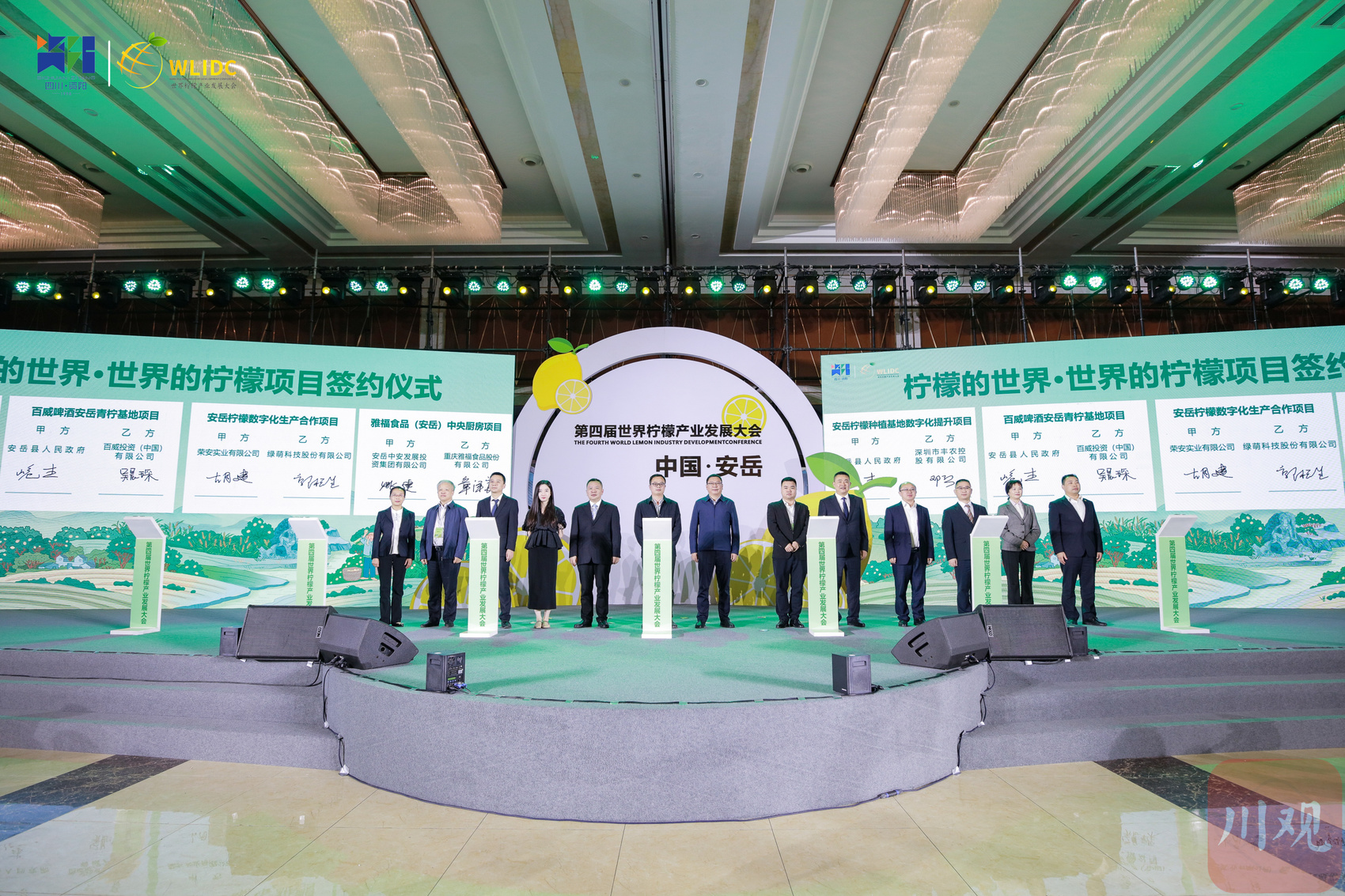 机遇在展会之内,合作是最好的回应。大会推出了22个招商引资项目,达成了12万吨国内外柠檬贸易订单。其中,在“柠檬的世界 世界的柠檬”项目签约仪式上,落地了安岳柠檬种植基地数字化提升项目、百威啤酒安岳青柠基地项目、安岳柠檬数字化生产合作项目、雅福食品股份有限公司中央厨房项目等。