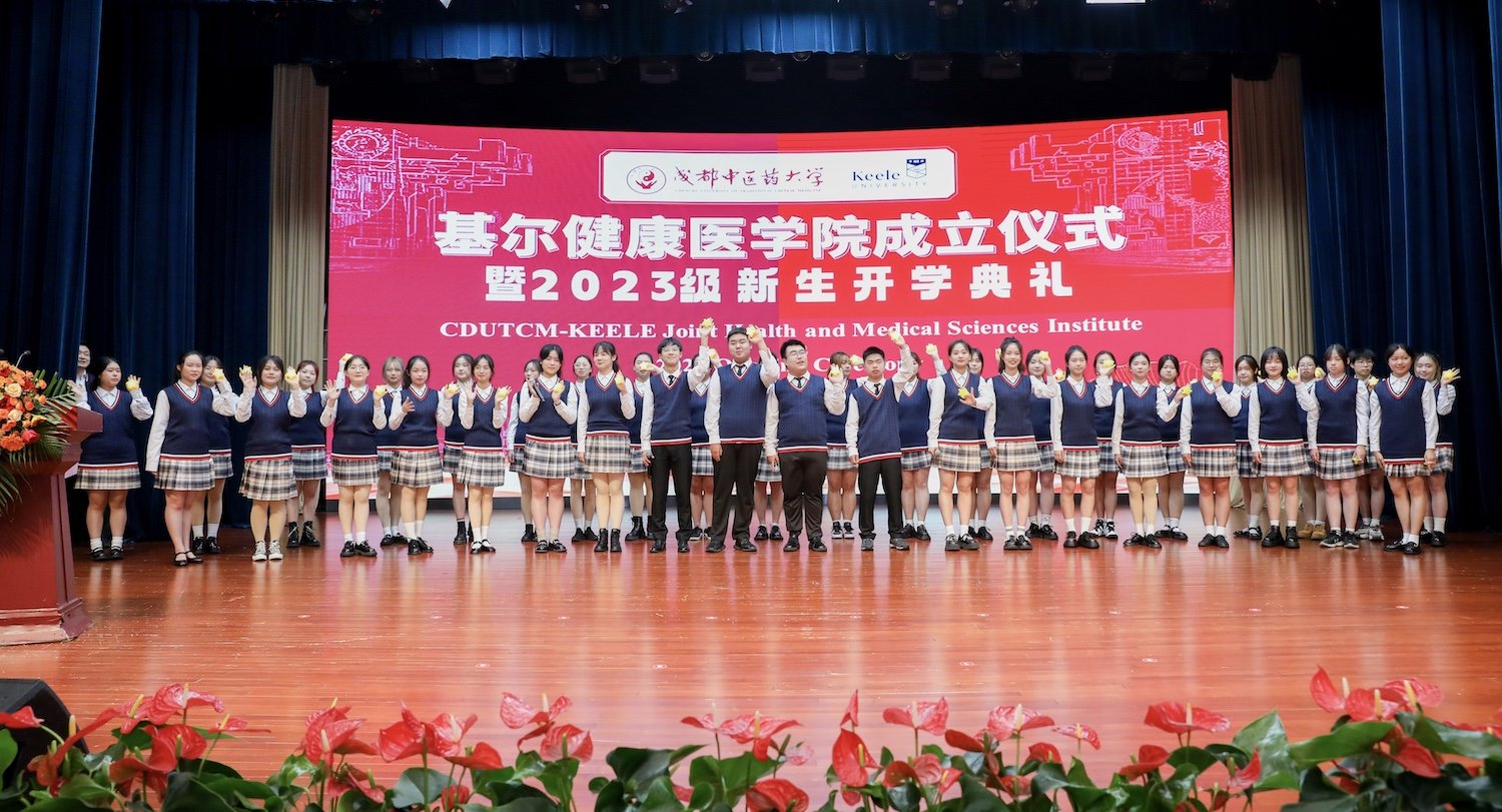 10月18日,成都中医药大学基尔健康医学院成立仪式暨2023级新生开学典礼在该校温江校区百会堂举行。四川省教育厅、四川省中医药管理局、英国文化教育协会(西南区)、基尔大学、成都中医药大学等相关部门负责人、师生代表参加开学典礼。
