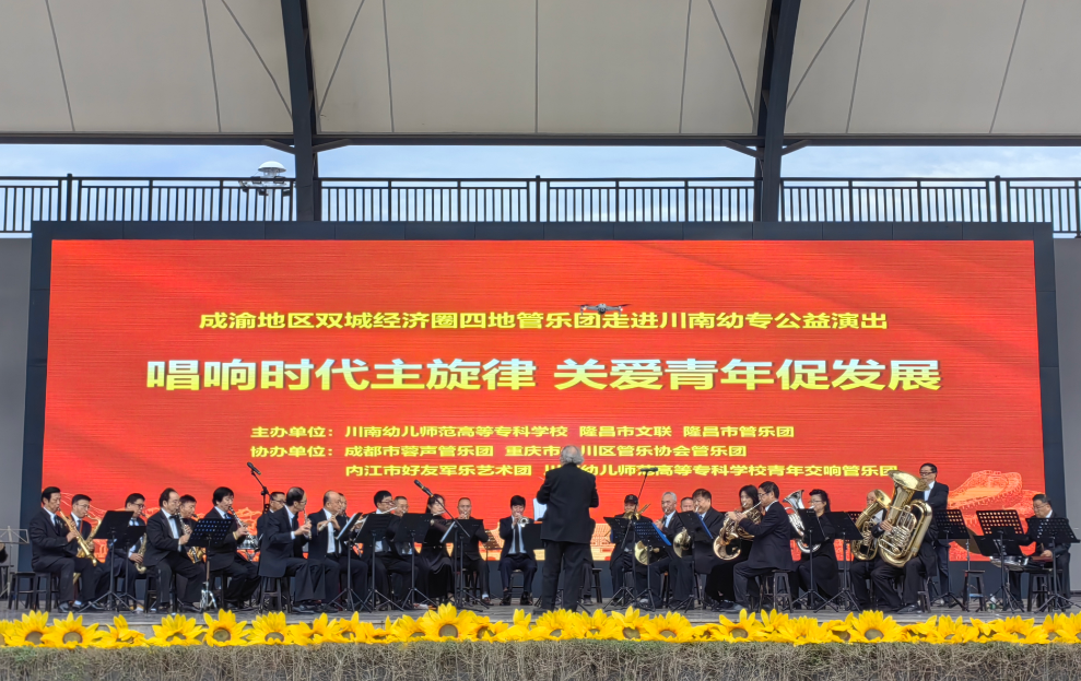 10月19日下午,由成都、永川、内江、隆昌四地的管乐团组成的公益演出团队来到隆昌川南幼儿师专,为全校师生带来了一场交响乐公益演出。