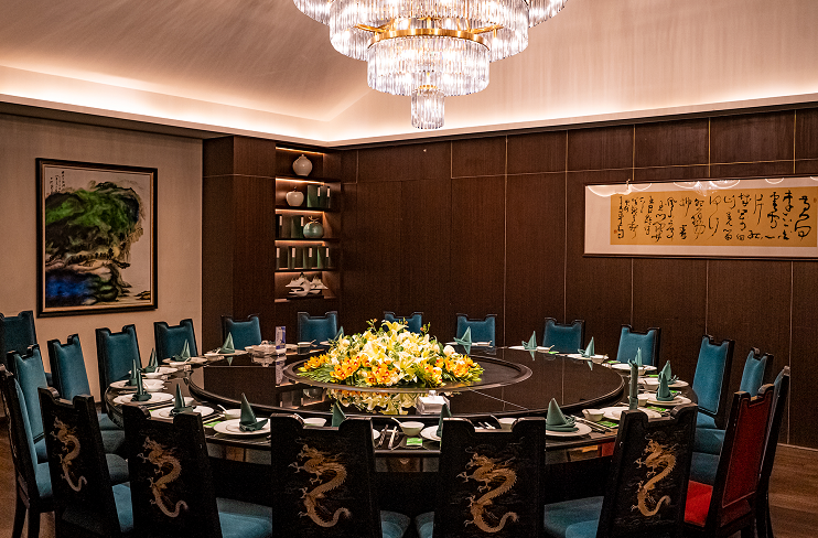 “整个装修环境把‘大千元素’充分融入了进去,包间的窗帘和壁画都是大千先生的水墨画。”向林介绍,汉安味苑将古色古香的中式风格及简单素雅的现代时尚元素充分融合,特别是传统字画与现代材质相融的设计风格做隔断或开敞、或封闭,不失单调。11个包间的取名也具有本土元素,分别为云顶阁、三元阁、西林阁、乐贤阁、钟楼阁等。