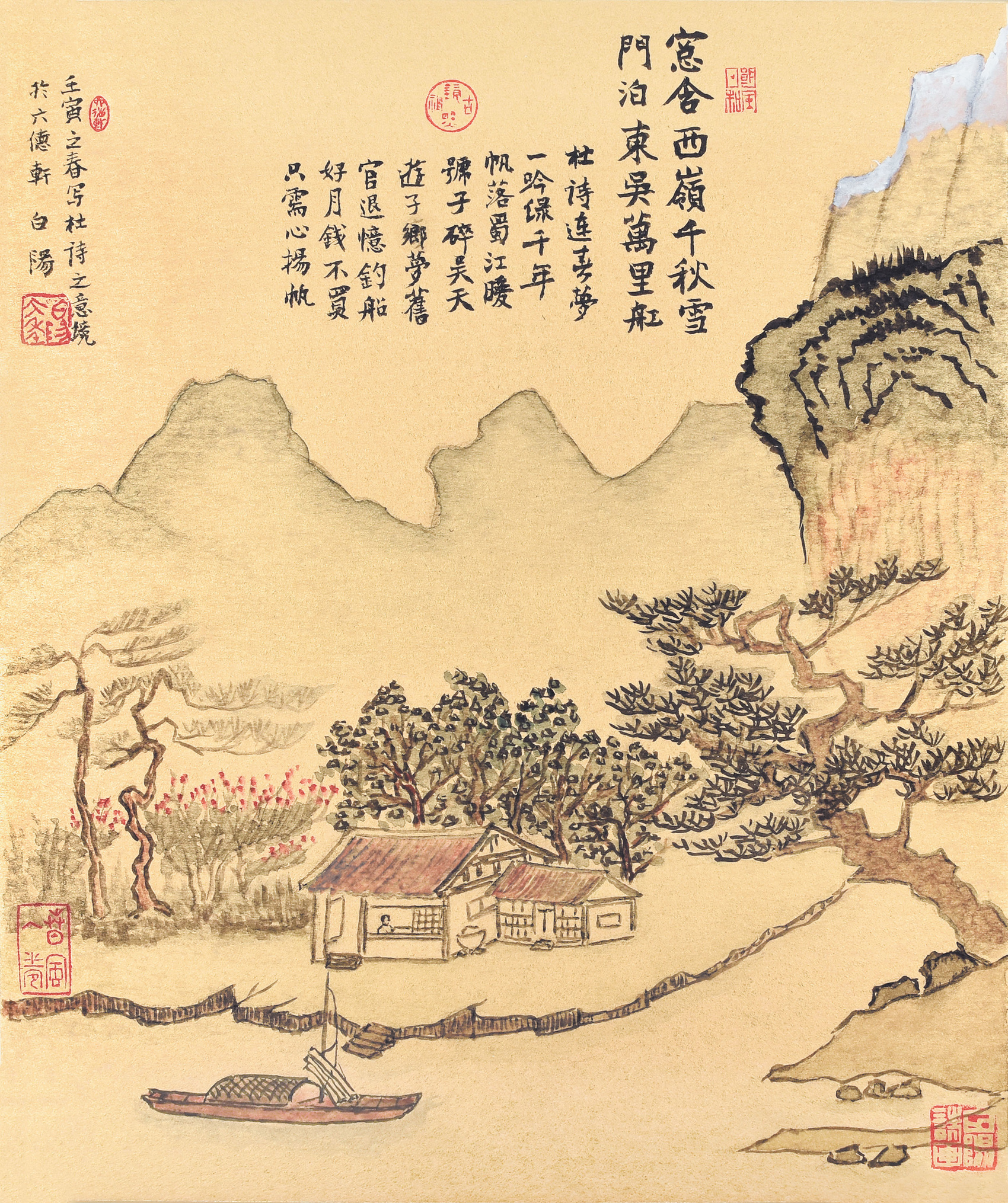 从旭宇的山水中,笔者读到了传统文人的思想境界,也读到了当代身处快节奏都市人所向往的山水美学。当然,旭宇的山水绝对不是传统意义上的文人画,尽管他从沈周、文徵明、唐寅的绘画中汲取了笔墨技法,尽管暗合了赵孟頫的“作画贵有古意”“书画本来同”的理念,尽管他参考了倪瓒、吴镇等的清幽逸气,但他并不局限于传统文人画的范畴。因为,旭宇并没有像很多画家那样临摹传统而落入某家某派技法的窠臼,也没有高举一面传统的大旗而沉溺于某个巨匠的某种思想。