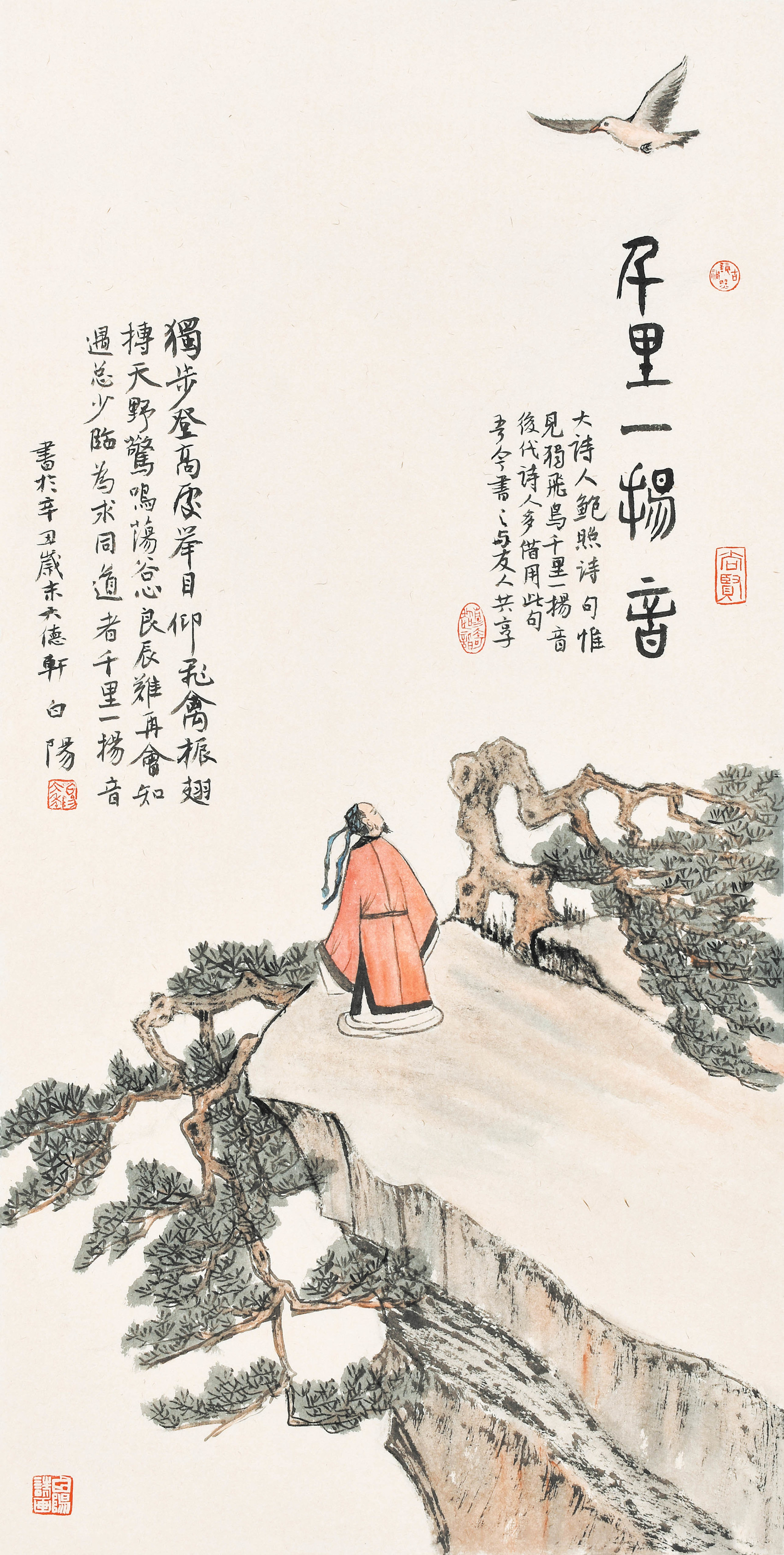 旭宇讲求笔墨情趣,却不是蜻蜓点水,一抹而过,他强调神韵气质,却不是简单的拟古临摹,更不是空陈形似,笔力未遒,而是风致韵度与精神气质统为一体,进而达到生命力和感染力汇聚的美学境界。他写胸中丘壑,不是空善悠悠;他注重意境表达,不是内里所无,而是思接千载,仰观宇宙的哲理思辨。同时,旭宇几十年的书法功力、积学厚养的文学沉淀,自然而然地流淌于画面,使画面洋溢文人的骨力,雅士的气质。
