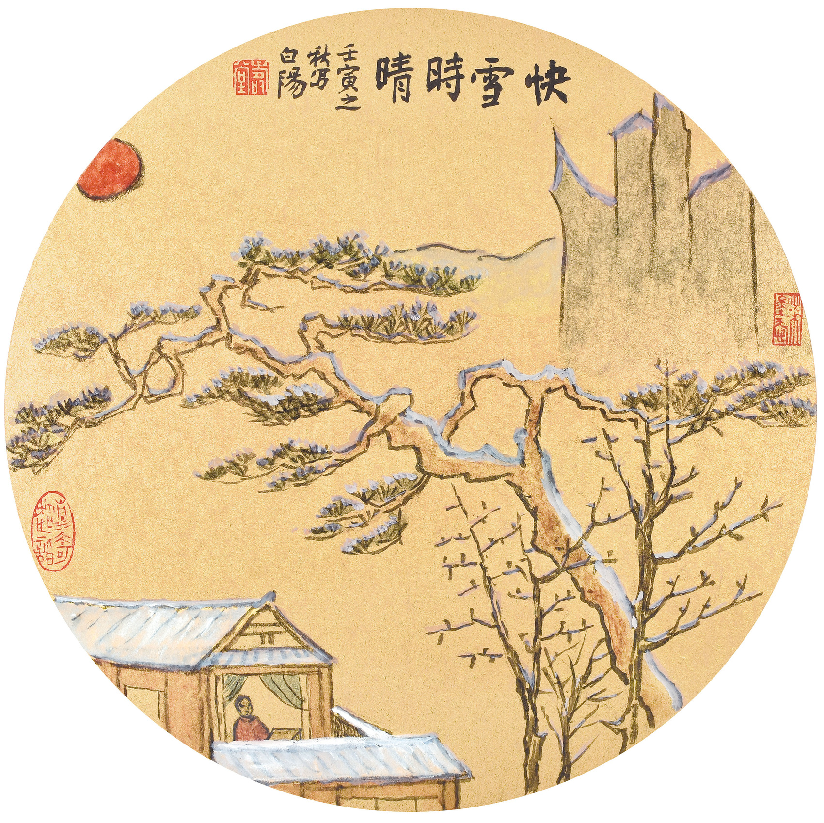 在意境渲染方面,峻岭凌云、风波浩淼、群鹜翔集等带有诗性的场景,多以淡墨、淡彩相互呼应调节画面节奏。虚与实,挥洒自如而妙趣横生;静与动,平淡率真又韵味天成。苍茫的意境,景少而气壮,笔简而意远。画面给观者一种近视如千里之远,远望而不离坐外的感观。山山水水意韵丰厚,散发着清雅秀润的气息,具有很强的代入感。