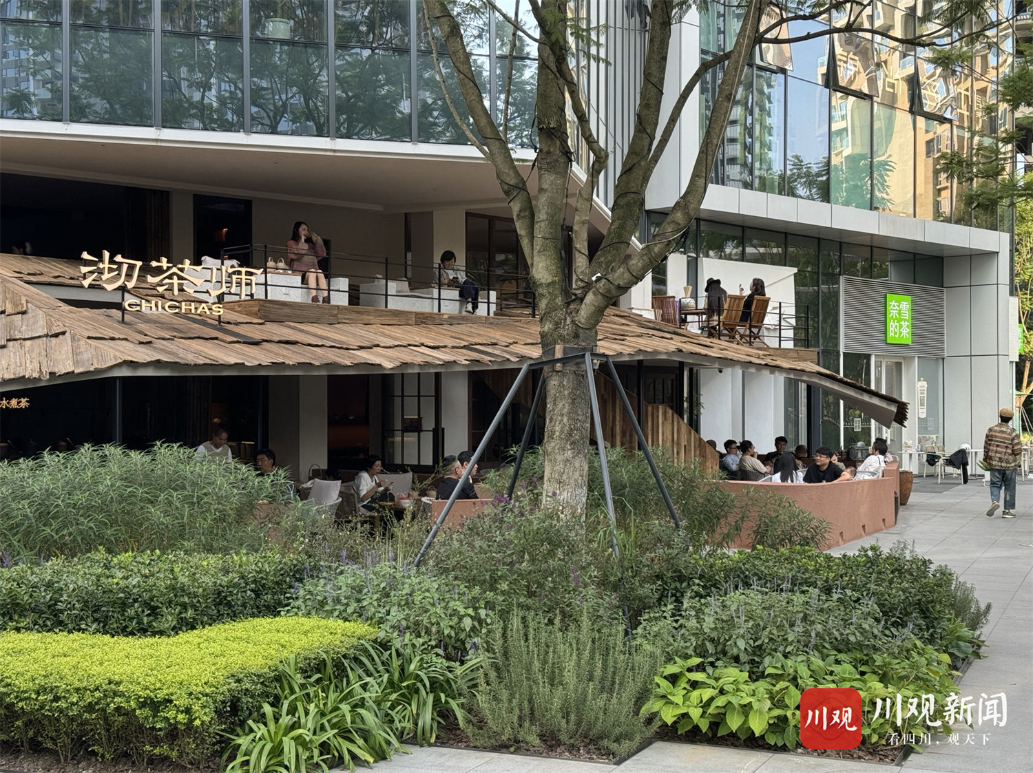 位于天府新区一非标商业街区的“成都造”新式茶馆,掩映在公园式街区之中,现场座无虚席。
