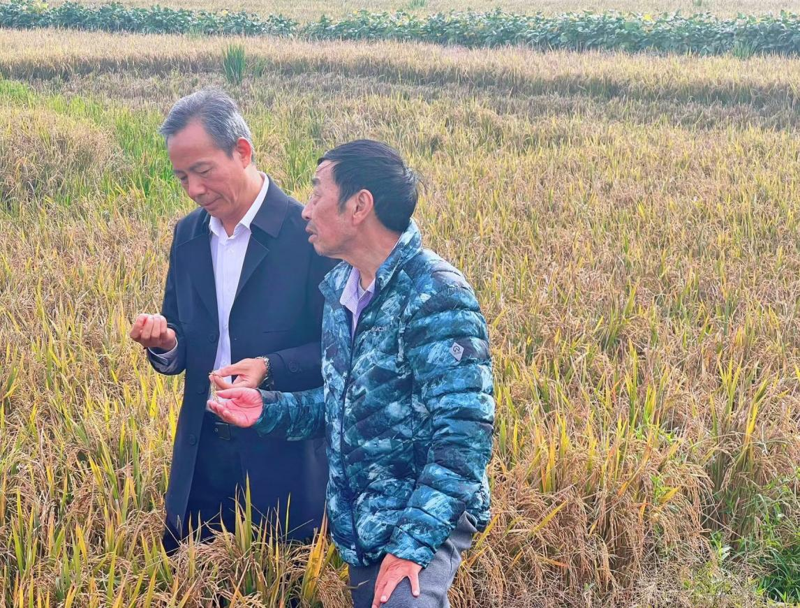 “‘再生稻一种一补增产增效’专利技术首次在四川进行应用,取得了初步的试验效果。该技术的核心关键除了需要解决中稻收割后与补种的水稻生育期同步的问题,还应在稻桩高度上进行调整,在温光条件允许的条件下,以低稻桩延长再生稻生育期,既增加了再生季水稻的产量,又能有效解决生育期不同步的问题。宜宾的气候条件完全适宜该技术的应用推广。”国家杂交水稻工程技术研究中心栽培室主任李建武博士对该专利技术在宜宾的应用充满信心。