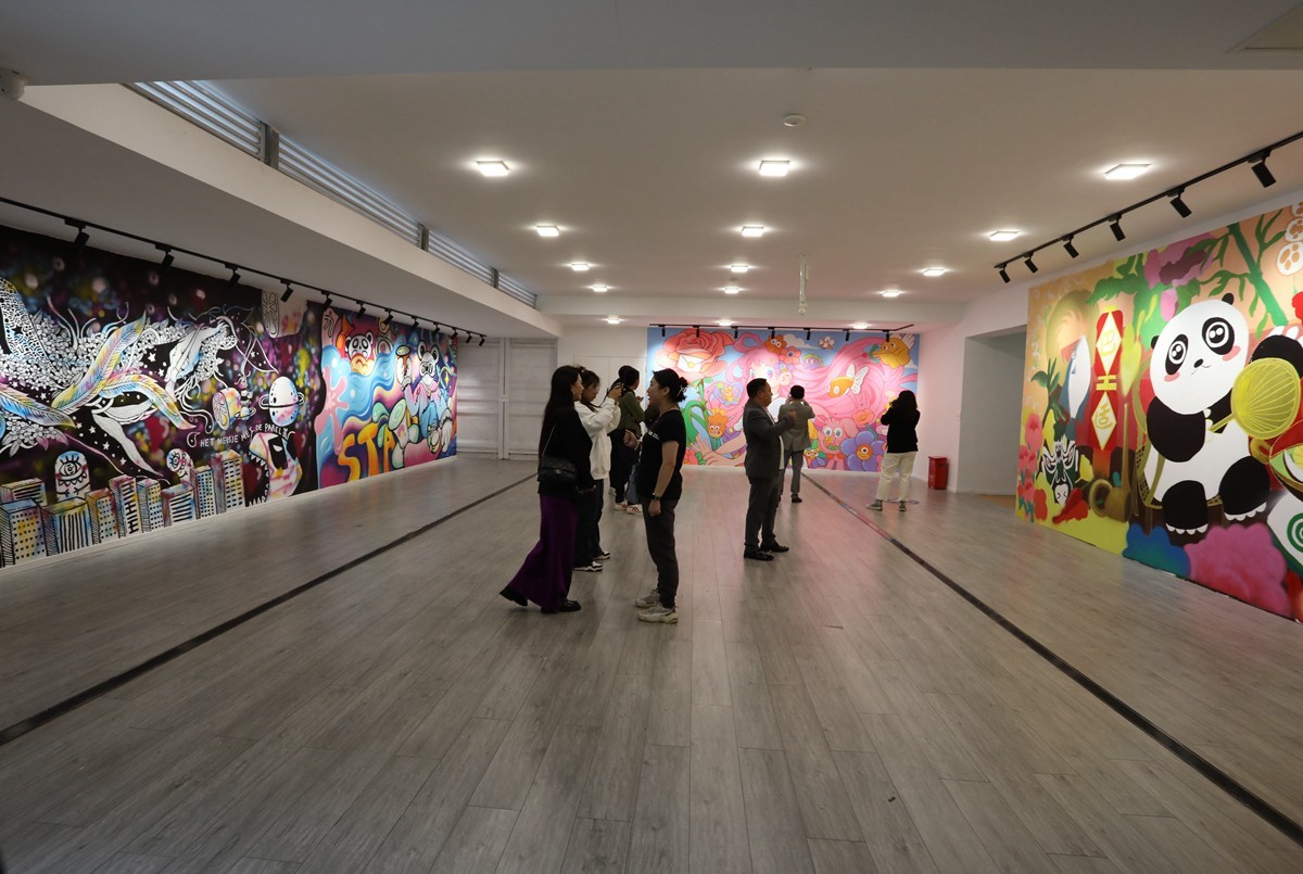 本次展览汇集了来自中国、法国、俄罗斯、德国、波黑、日本、塞尔维亚、印度8个国家的艺术家,现场创作展示出63件涂鸦·街画作品。从展厅到美术馆中庭的墙面,龙飞凤舞、海洋生态、熊猫火锅、城市乡村……观众可以看到不同形式和表现风格的创作,其中有成都本土文化、生态环境的描绘,还有极具艺术家个人特色的涂鸦字体。