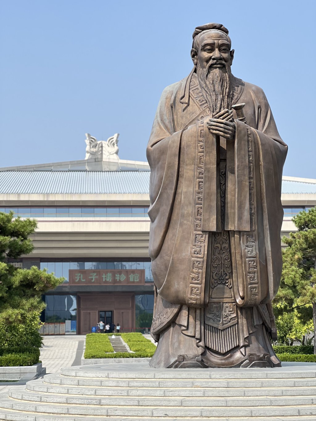 位于山东曲阜的孔子博物馆,矗立着一座巨型孔子塑像