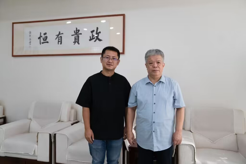 杨朝明(右)接受专访后与四川日报全媒体记者合影