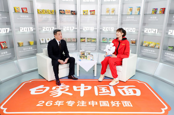 10月21日,中国女篮明星球员韩旭作为白象中国面首位冠军体验官,亮相“白象泡面工厂”主题快闪店成都站活动现场,并做客直播间,与著名体育主持人杨健一起畅谈“无畏金兰”勇夺亚运会冠军背后的故事。