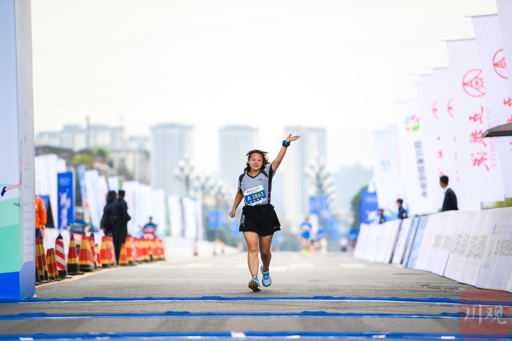 重庆选手冯丹以1小时17分10秒的成绩获得半程马拉松比赛女子组第一名,接触马拉松近4年,这是她第一次在宜宾参加马拉松比赛,一路上她印象最深的,是长江边的风景。“在长江边跑步是一种享受!”