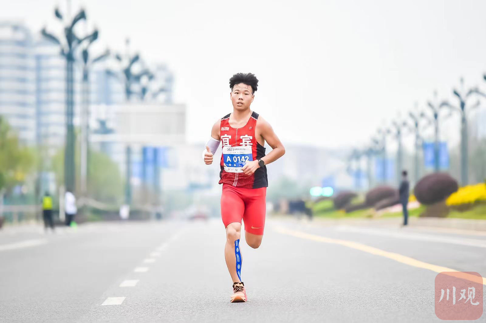 半程马拉松比赛男子组金牌被来自凉山的伍二清摘得,昨天他坐了5个小时火车来到宜宾参赛。“这次马拉松比赛的坡道比较多,终点线前还有一段缓坡,对我来说是一个全新的挑战,克服了刚开始腿部的胀痛之后,身体开始进入状态。”伍二清说。