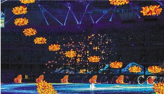 开幕式上的文艺表演中千变万化的金桂花。记者 贺元凯 摄