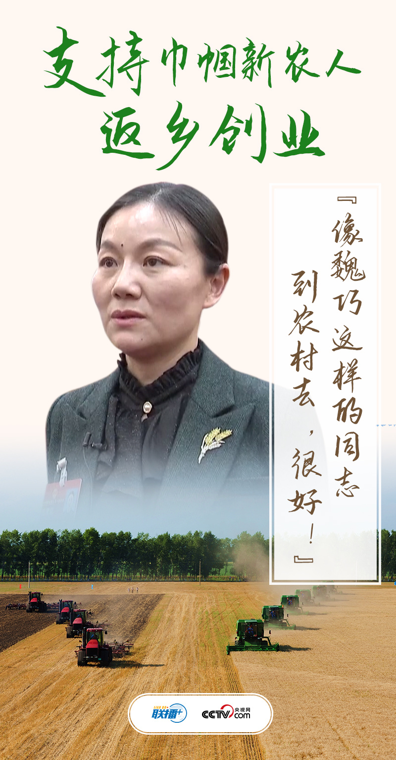“80后”魏巧本是一名科研工作者,她的父亲在江苏镇江从事农机服务和农业规模化经营。2014年底,魏巧的父亲看到总书记强调“农业专家的成果就是要体现在广阔的土地上,把科研创新转化为实践成果”的新闻后激动不已,深夜就给女儿打电话,希望她能回来接班。