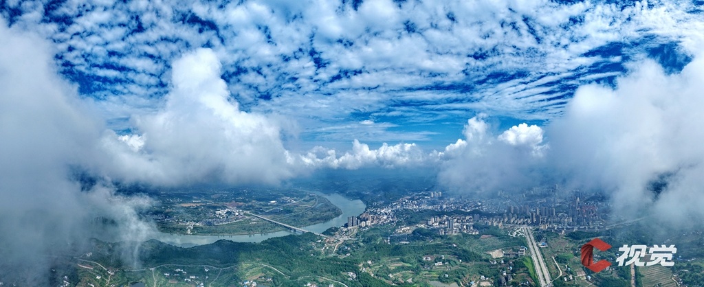 云雾缭绕的蓬安县,从空中俯瞰,宛如一幅纯美的山水画卷。