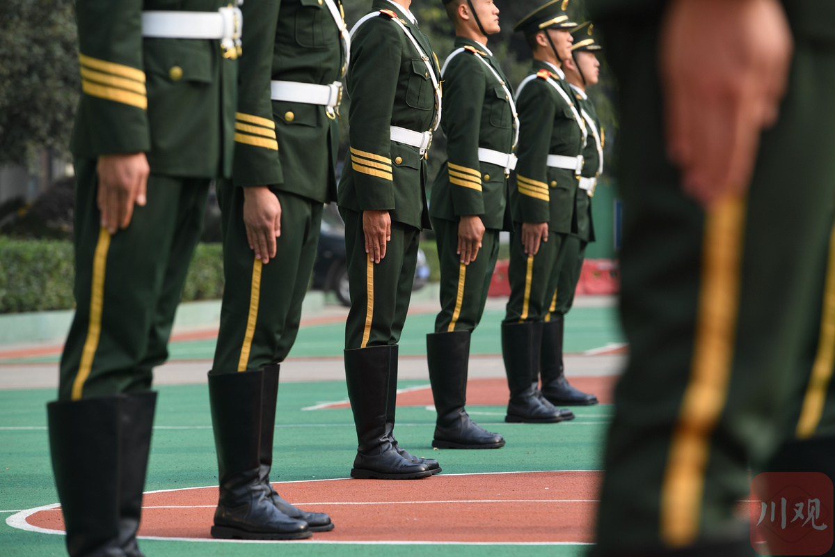 墨绿军装、锃亮皮靴、金黄绶带……11月16日下午4点过,距离四川省抗击新冠肺炎疫情和防汛救灾表彰大会召开还有近18个小时。在武警成都支队的操场上,班长彭亮正带领着战友们做最后一次队列训练。