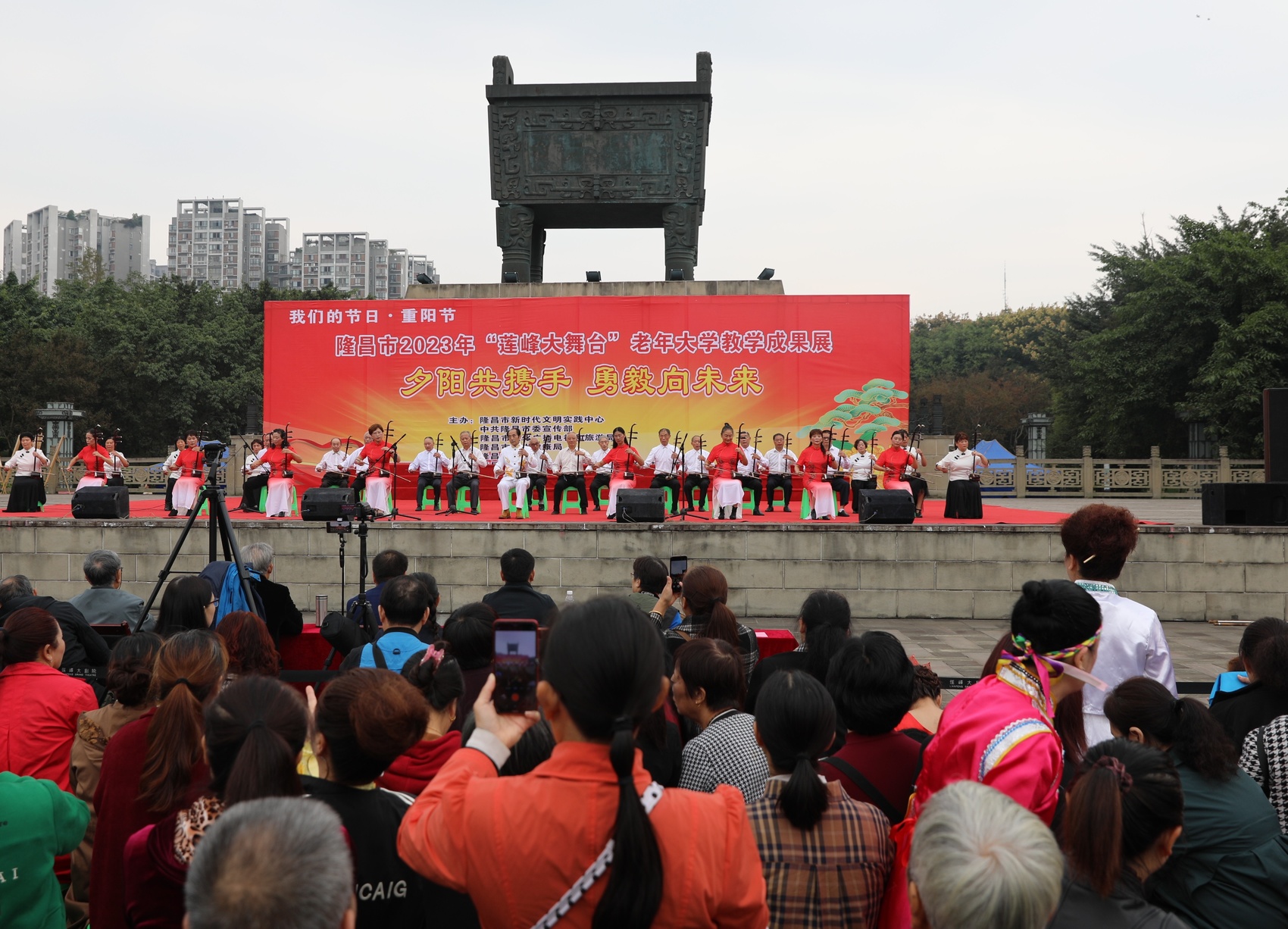 与此同时,隆昌市莲峰公园,一场以老年人为主角的“夕阳共携手 勇毅向未来”教学成果演出火热举行。器乐合奏、书画表演、太极拳、时装秀……丰富多彩的节目将牌坊文化、青石文化等文化元素和孝老爱亲的中华优秀传统美德巧妙融合,充分展现了老年人们老有所乐、老有所为、热爱生活、积极乐观的精神风貌,以实际行动倡导全民爱老敬老新风尚。