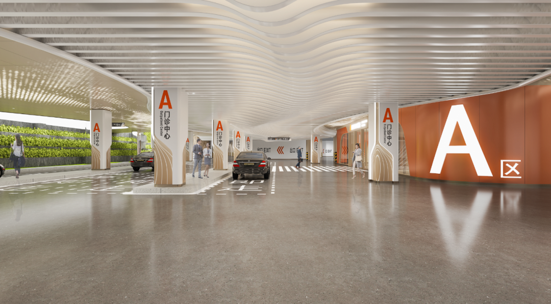 医院设计强调“医院与城市交通的空间公共性”,采用复合集成式设计策略,将出租车地下接驳、地铁接驳、医院门诊入口大厅、地下商业等一系列空间和设施整合,在门诊主入口形成一个“城市客厅”。在动向流线方面,该项目还通过采用住院患者与门诊患者分流设计,形成简洁高效的住院竖向交通。
