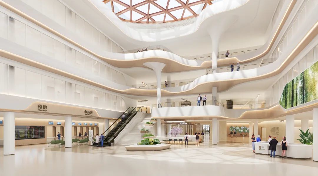 设计将自然与建筑相结合,让“艺术疗愈+生态自然+医疗空间”互融共生,助力打造“花园中的医院,医院中的花园”。结合自然共生的室内环境及体验式的医疗服务,遵循“人本化、低碳化、共享化”的设计理念,让医护与患者能多场景、多角度地融入疗愈绿洲的美好。