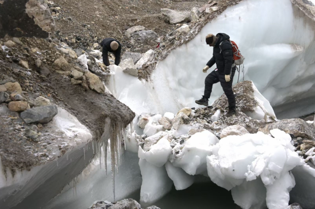 科考队员穿越达索普冰川。受访者供图