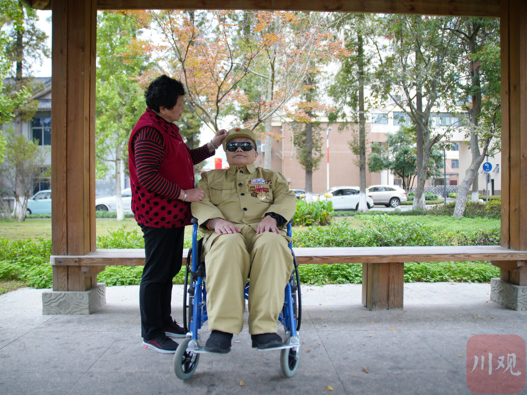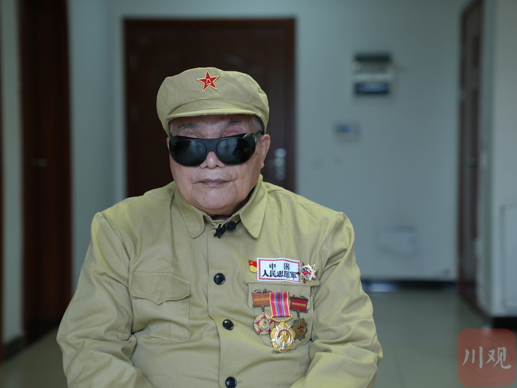 10月20日,在四川省革命伤残军人休养院荣军休养楼的一个套间里,90岁的王正恩带着墨镜坐在客厅的沙发上,房间里大声播放着电视新闻节目。参加过抗美援朝战争的王正恩,随着年龄的增大,双耳听力也渐渐变差,佩戴了助听器。