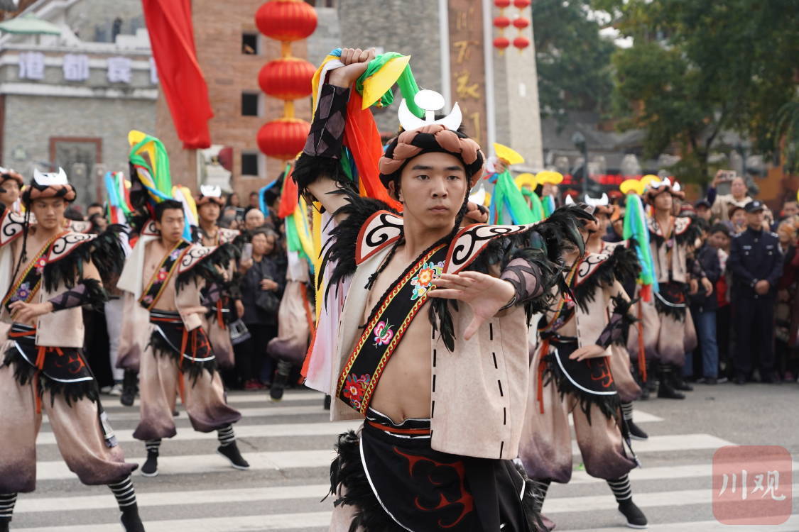 巡游中,羌笛、口弦、原生态沙朗、舞龙舞狮等具有民族特色的文艺节目悉数亮相。独特的民族风情也让道路两旁观众热情高涨,大家纷纷拿起手机拍摄视频或照片,分享这份喜悦欢乐。