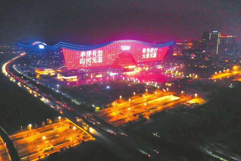 11月16日傍晚,成都华灯初上,在环球中心、金融城双塔、成都339等多个地标建筑和多个重要点位的户外LED大屏或外墙上,出现一句句暖心的标语向英雄致敬。四川日报全媒体记者 吴聃 摄