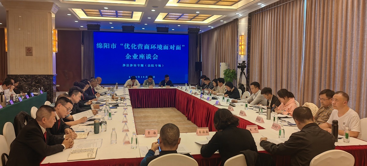 10月24日下午14时许,绵阳市中级人民法院召开“优化营商环境面对面”企业座谈会涉法涉诉(法院专场),11家企业代表各抒己见,畅所欲言。