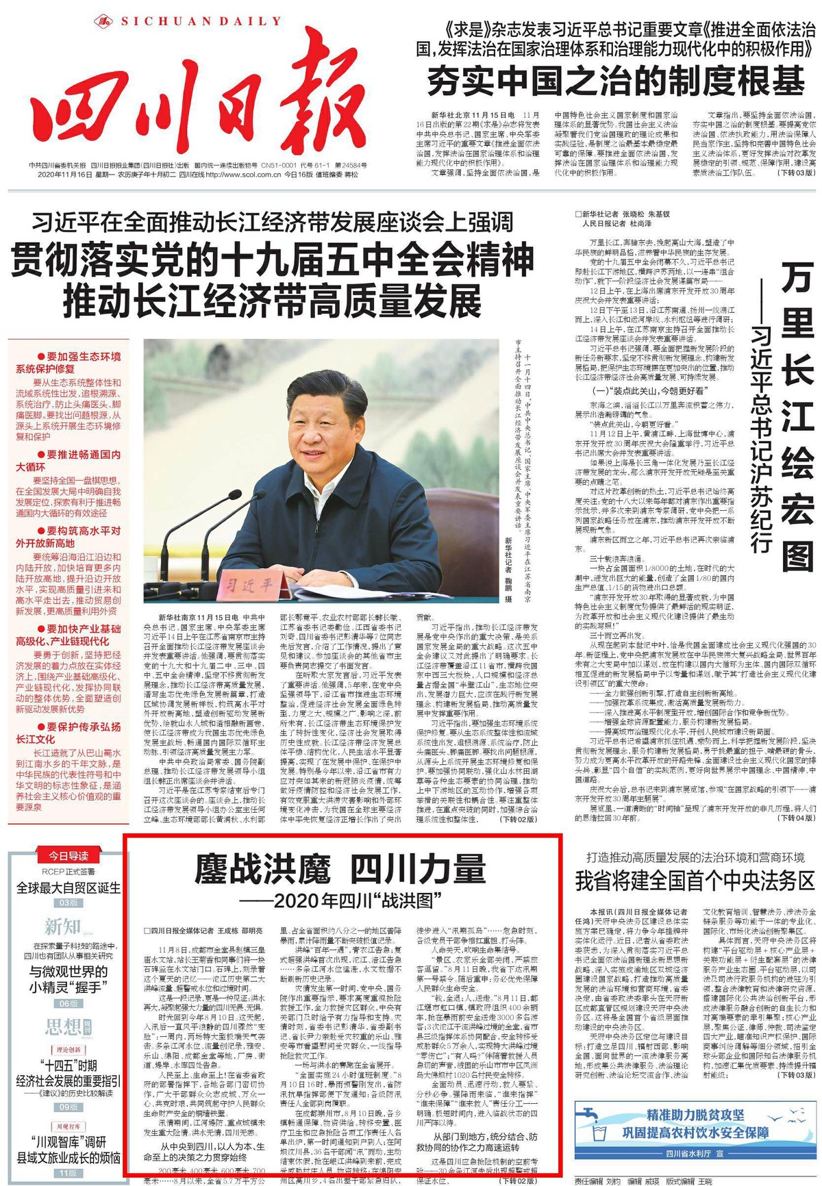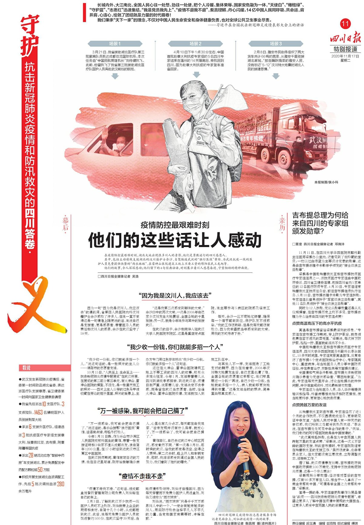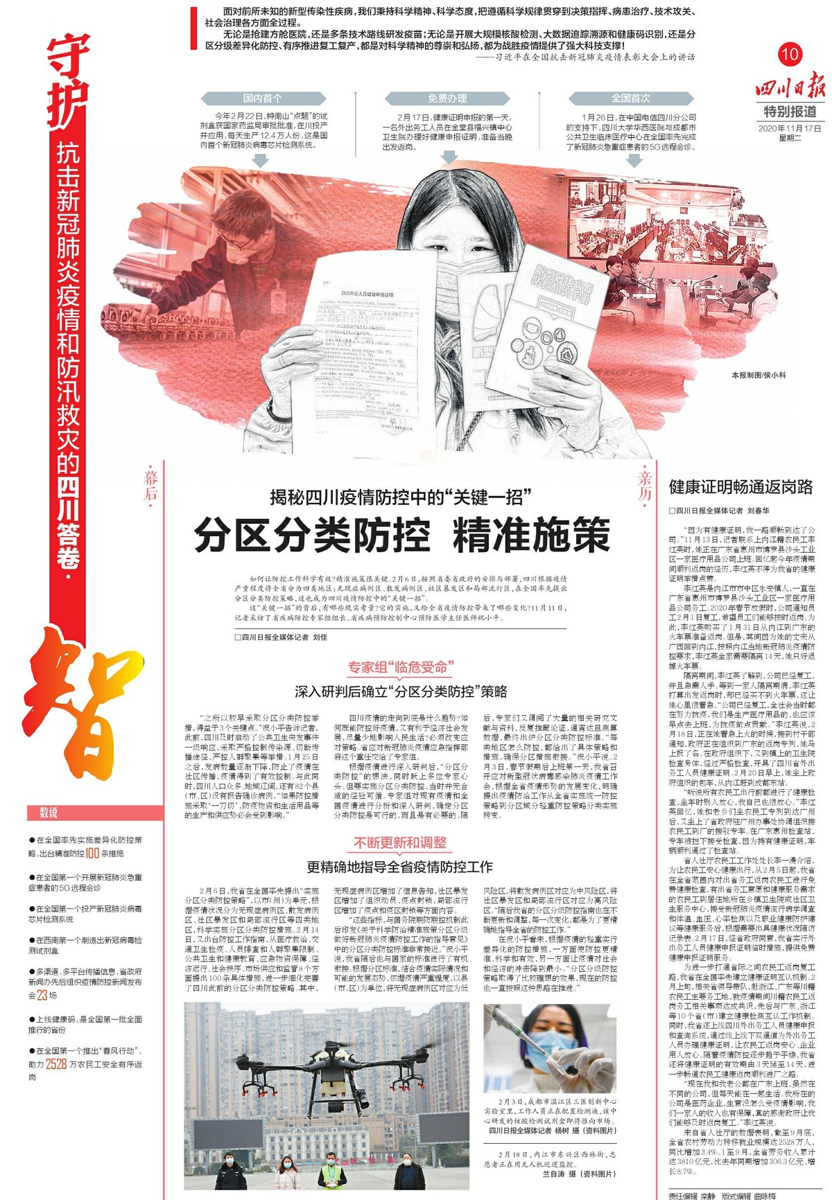 今天,11月17日出版的四川日报,除了一版的长篇通讯和社论,还特意推出四个整版的特别报道,四个版分别冠以“勇、智、义、准”四个字,浓缩了抗击新冠肺炎疫情和防汛救灾的四川答卷的核心要义。